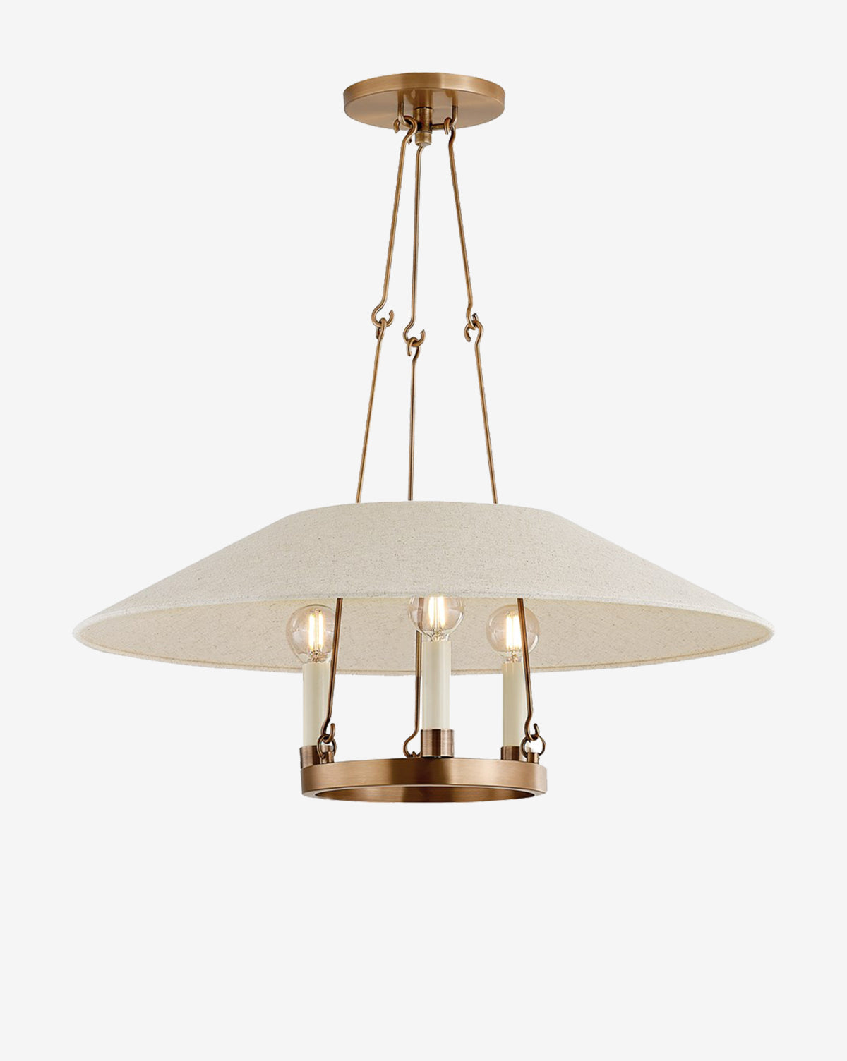 The Arcane Pendant strikes a balance between its simple structure and its stunning tapered shade. In an aged brass finish, the pendant makes a unique statement in lighting designs from the kitchen to the living room.