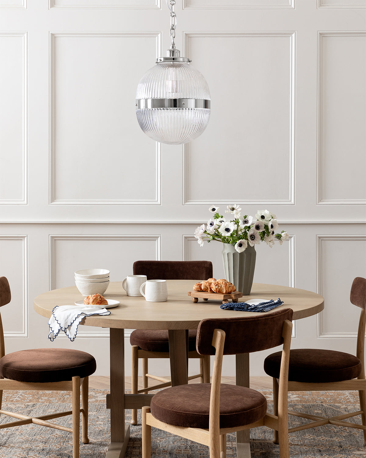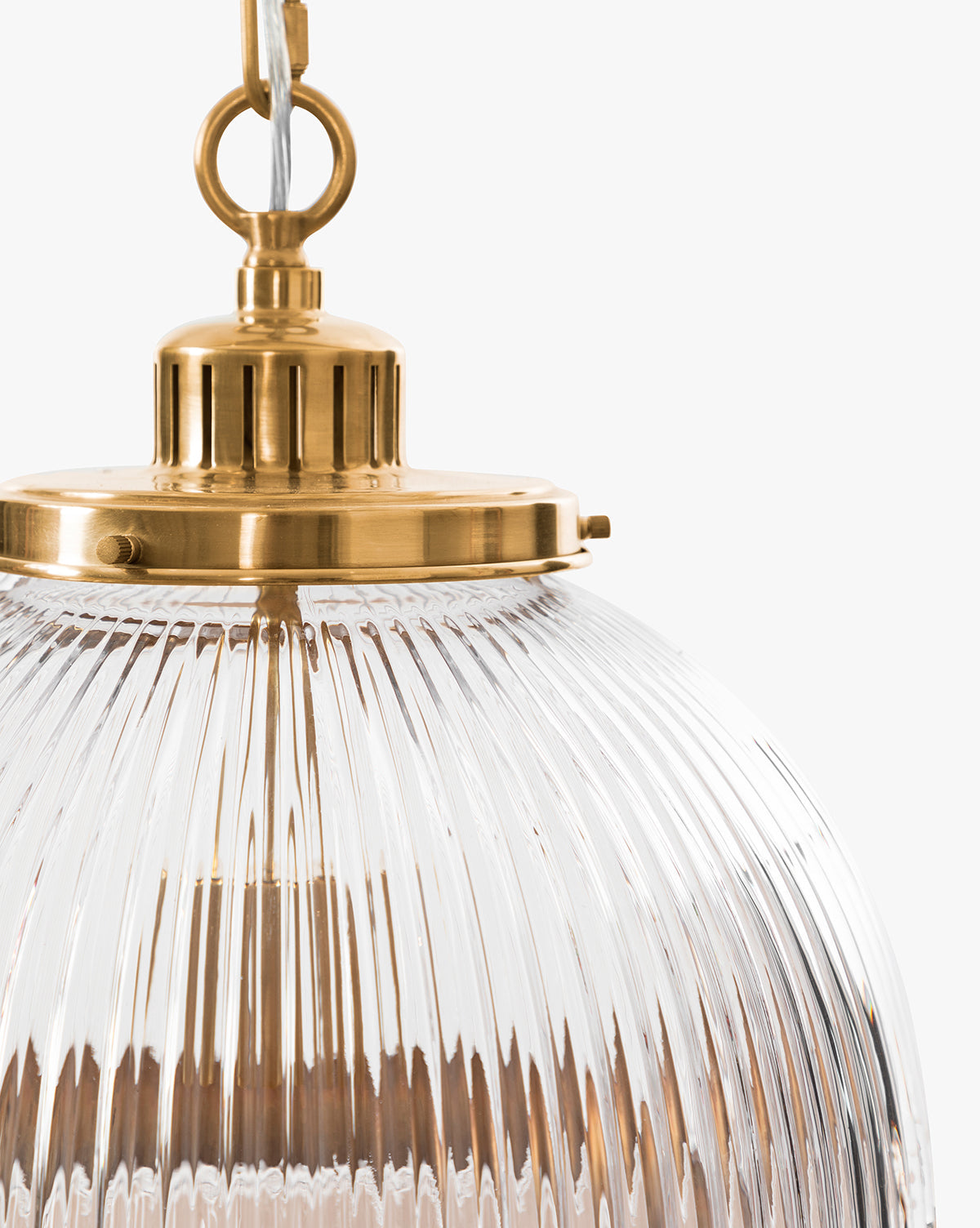 With a traditional feel, the thoughtful design of the Hastings Pendant brings unique beauty to your home. In a variety of finishes, the blown glass pendant light features ribbed details and a band inset for a truly dynamic look.